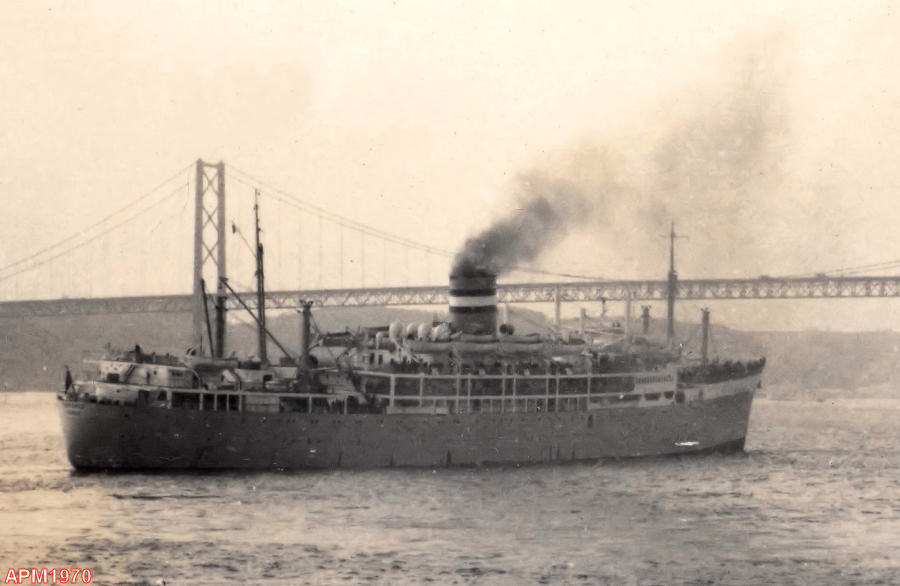 Santos, no Navio Império a caminho de Moçambique.