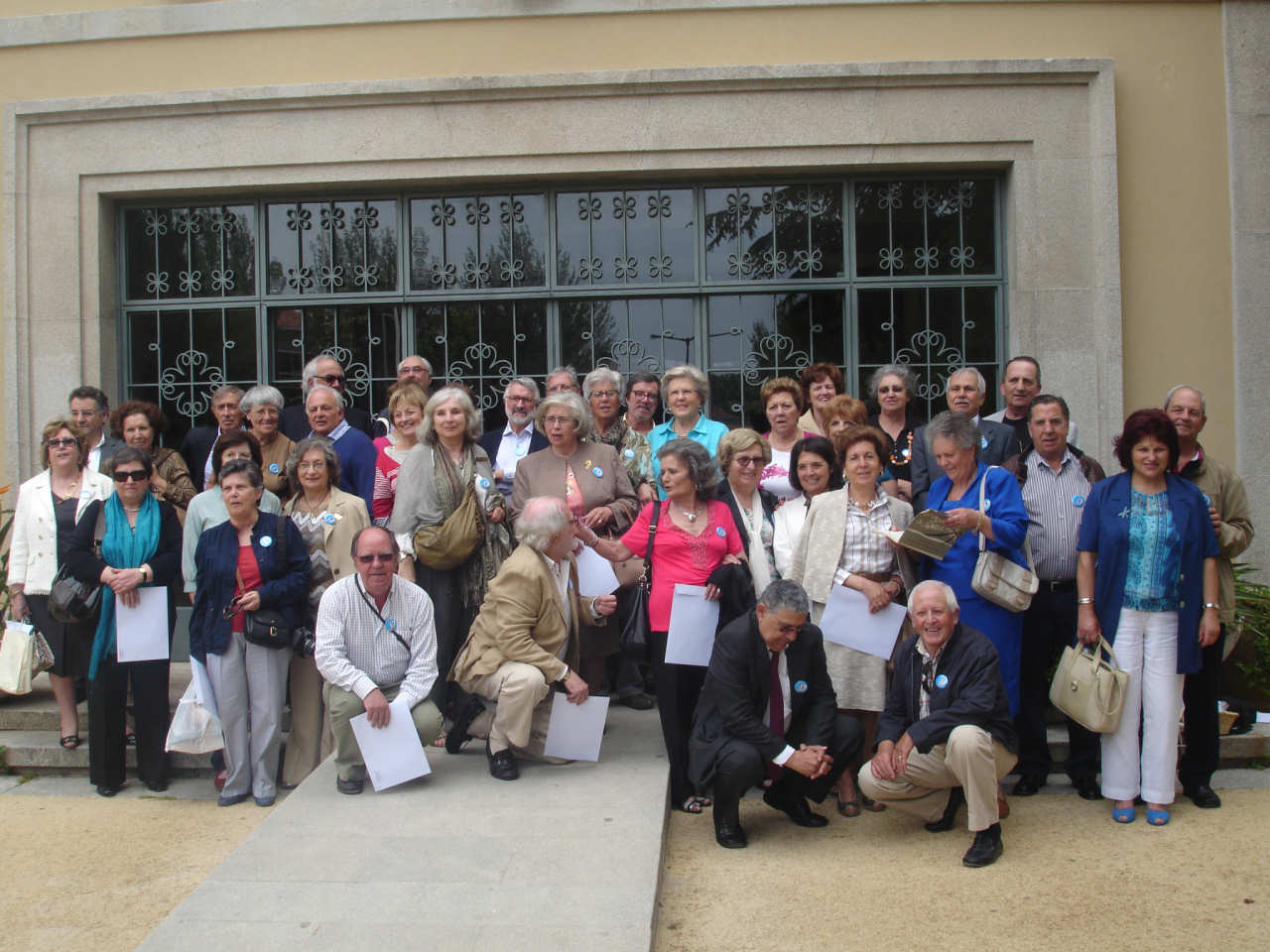 Fotografia para recordação do encontro na entrada da Escola Secundária José Estêvão.