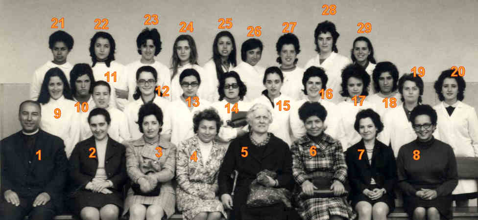Alunas: 9.???; 10.???; 11.???; 12.Fernanda Romão; 13.???; 14.???; 15.???; 16.Maria Manuel Seiça Neves; 17.Ana Maria Peres; 18.???; 19.Manuela Gamelas; 20.Carmo Rodrigues; 21.???; 22.Henedina Martins; 23.Maria Manuel Albergaria; 24.Paula Paulo; 25.???; 26.Manuela Justiça; 27.Arlete Monteiro; 28.Paula Marieiro; 29.???.