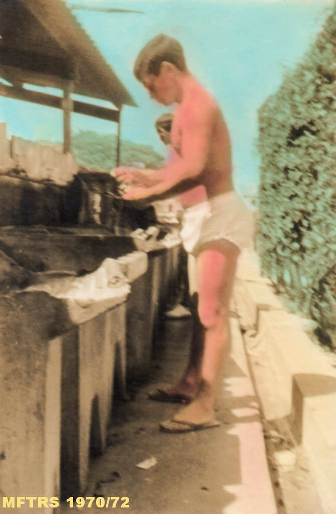 Imagens obtidas durante o período de passagem pelo Centro de Comandos de Luanda, situado na vasta zona militar do Grafanil, por onde todos os que iam para Angola tinha de passar obrigatoriamente. Lavando a roupa.