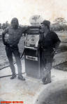 Junto ao posto de abastecimento. Ao fundo os bidões de combustível.