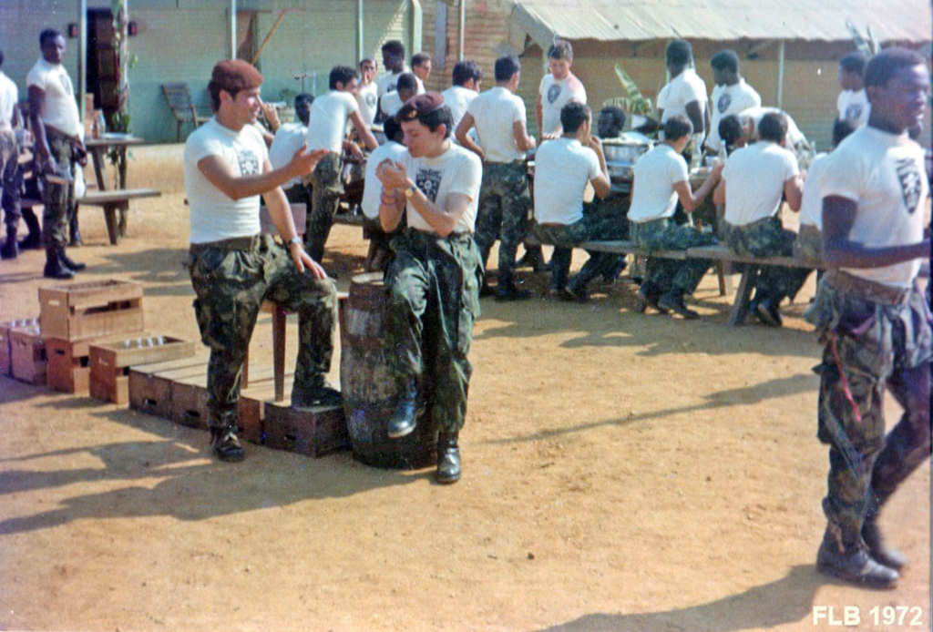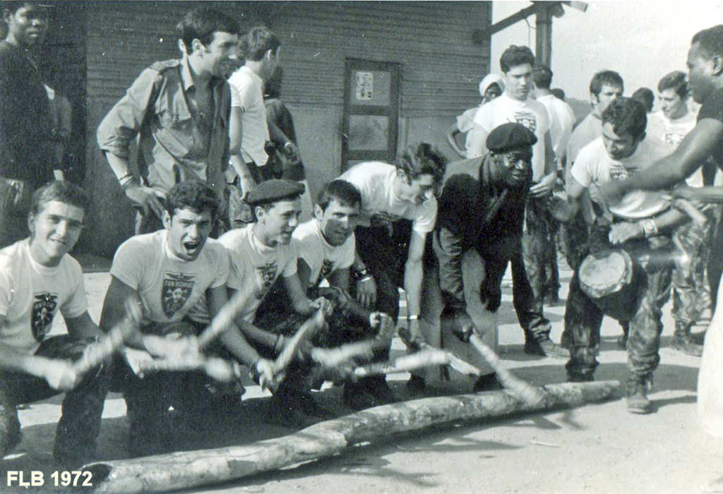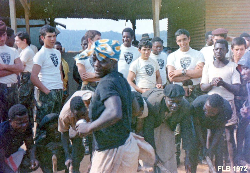 Festa com os Bailundos. O pessoal da Companhia de Caçadores 3412 enverga as camisas com o emblema da companhia.