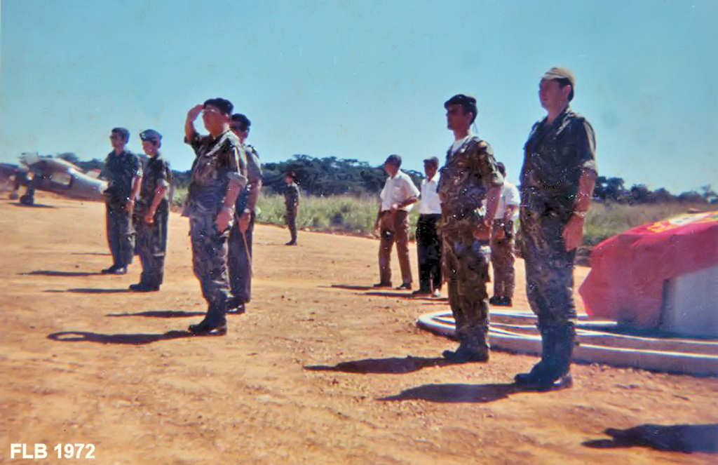 Desfile do pessoal militar por altura da inauguração da pista nova de aviação.