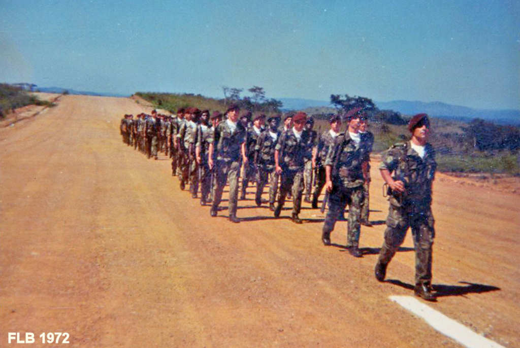 Desfile do pessoal militar por altura da inauguração da pista nova de aviação. (Imagem anterior com maior aproximação.)