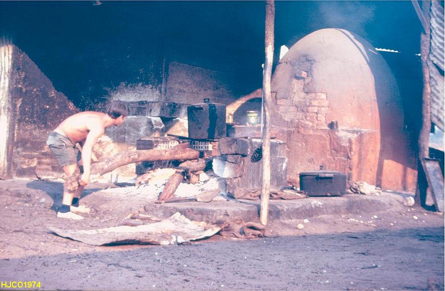 Metendo lenha no fogão, para