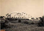 Barco típico da região. Ao fundo, a ponte sobre o rio Mansoa.