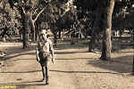 Autor da fotografia com a lavadeira e outros elementos da população local.
