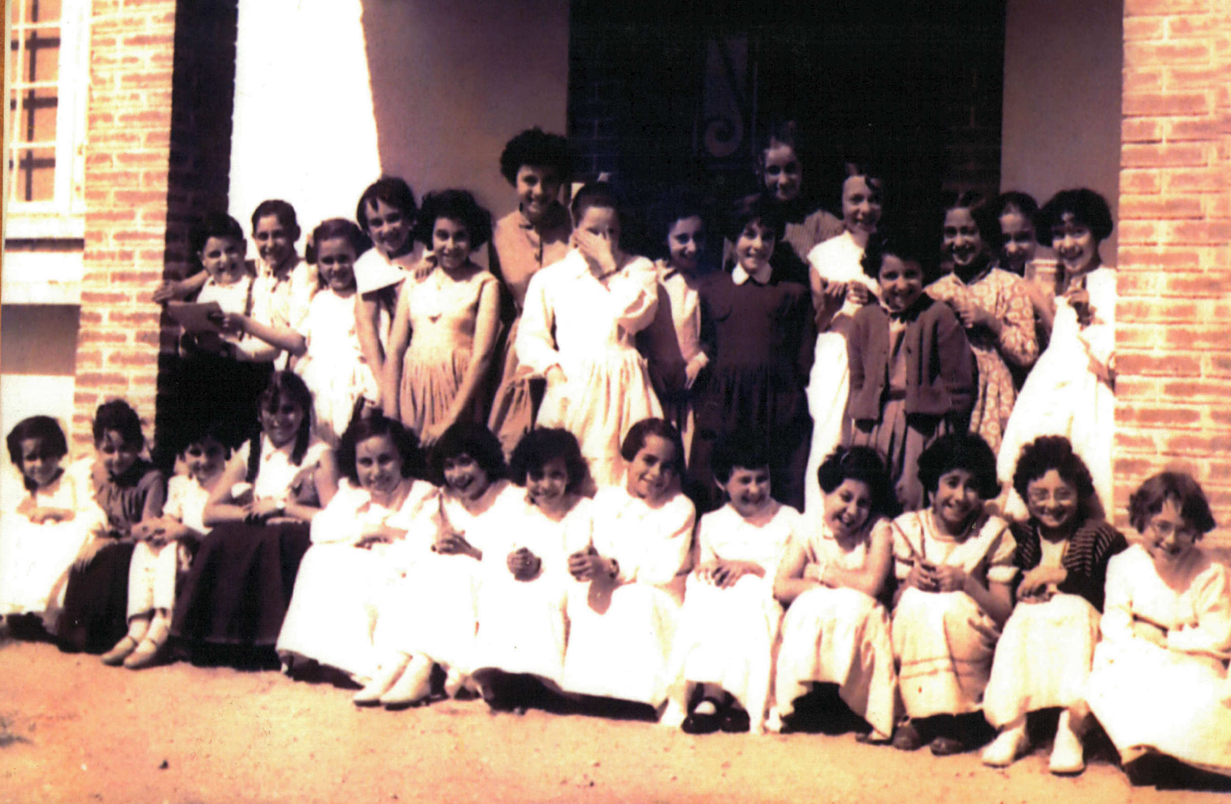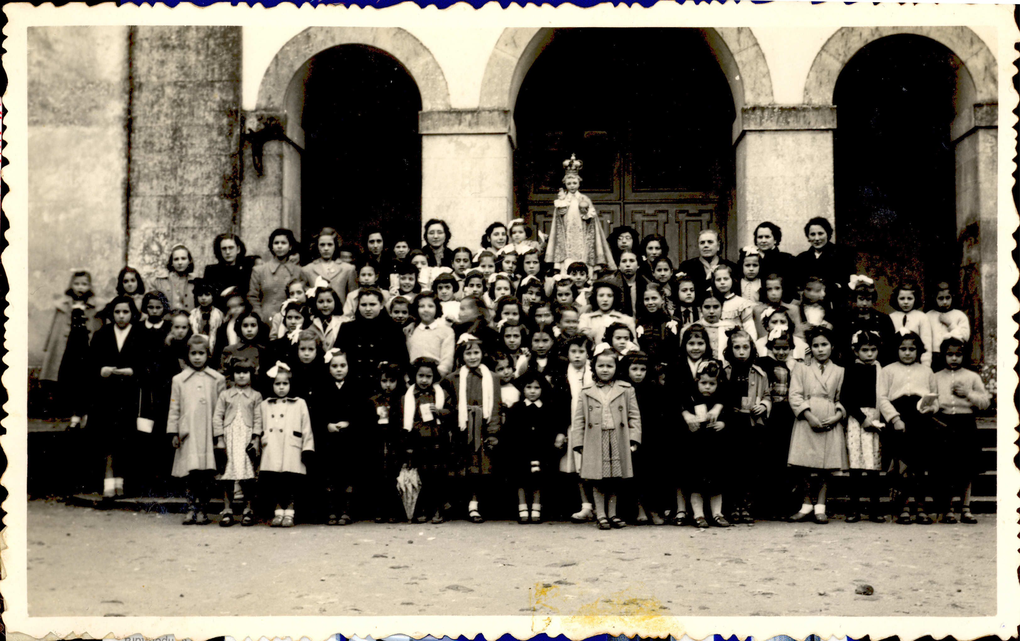 Professoras, catequistas e crianças à porta da Igreja do Carmo, em 15 de Fevereiro de 1953.