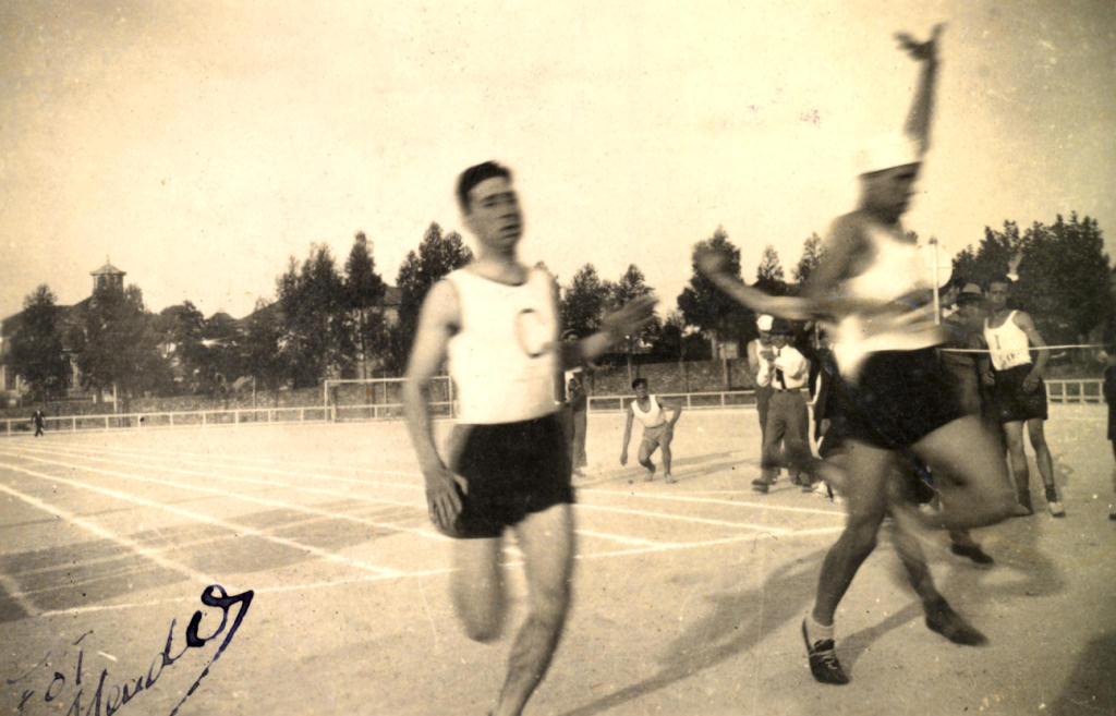 1 - Prova de atletismo em 26 de Setembro de 1931. Onde? De braço no ar, Francisco Gonzalez de la Peña, atleta do I.A.C. desde a fundação do clube.