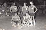 Equipa de Basquetebol dos Fuzileiros Especiais n.º 7. Da esquerda para a direita – Em baixo: ???; ???;Em cima: ???; ???; ???.