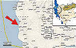 A leitura de mapas modernos parece indicar que a povoação de Metangula ou já não existe ou terá mudado de nome. A seta vermelha deverá corresponder à localização provável, tendo em conta o mapa antigo, colocado no canto superior direito do novo mapa. (Ver comentário de um colaborador)