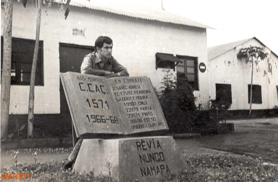 José Alves Nogueira da Companhia de Caçadores 2552, junto ao Memorial aos falecidos da Companhia de Caçadores 1571.