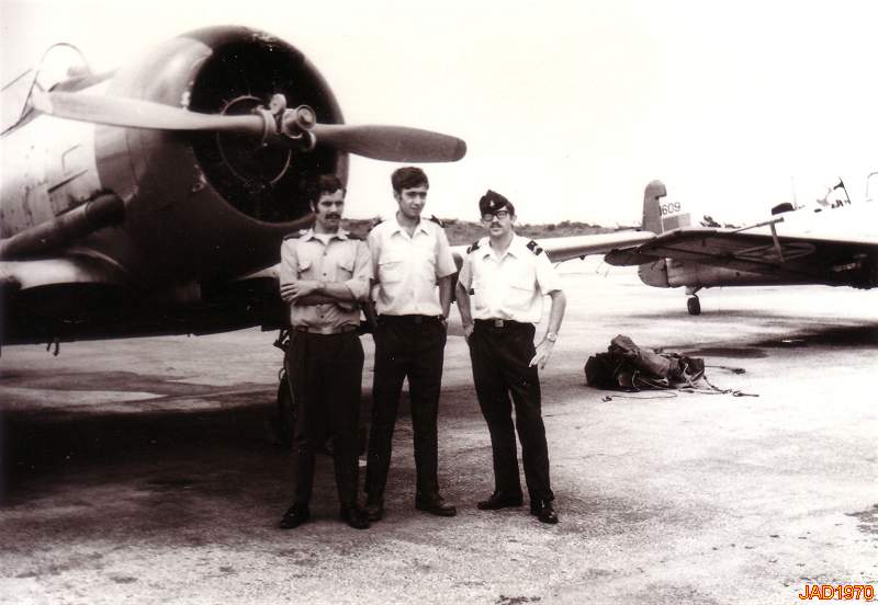 O dono das fotografias sentado na asa de um aparelho T6 já municiado.