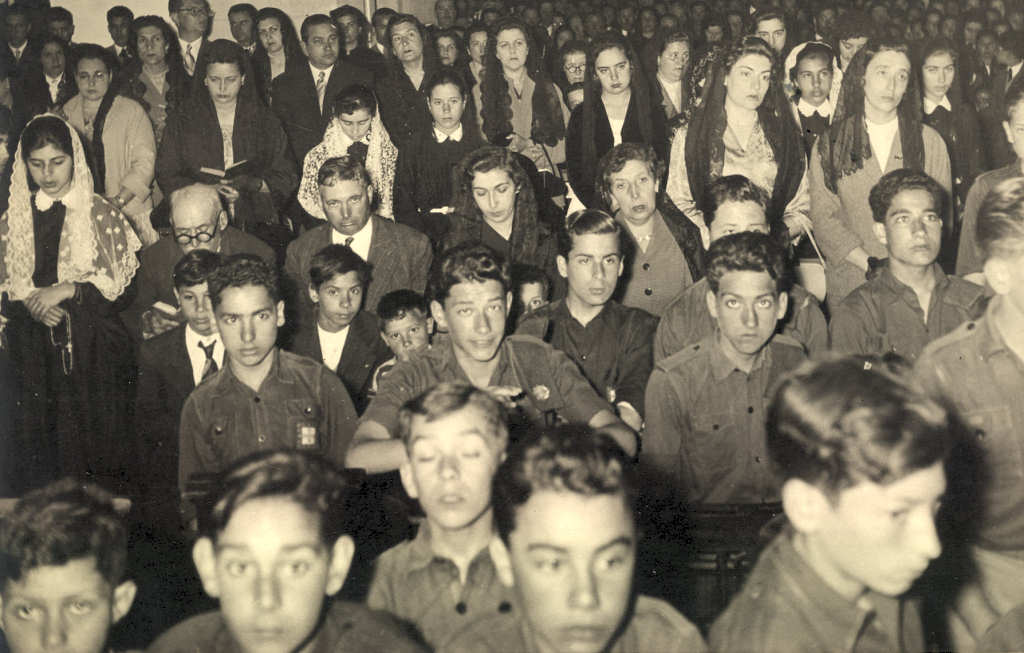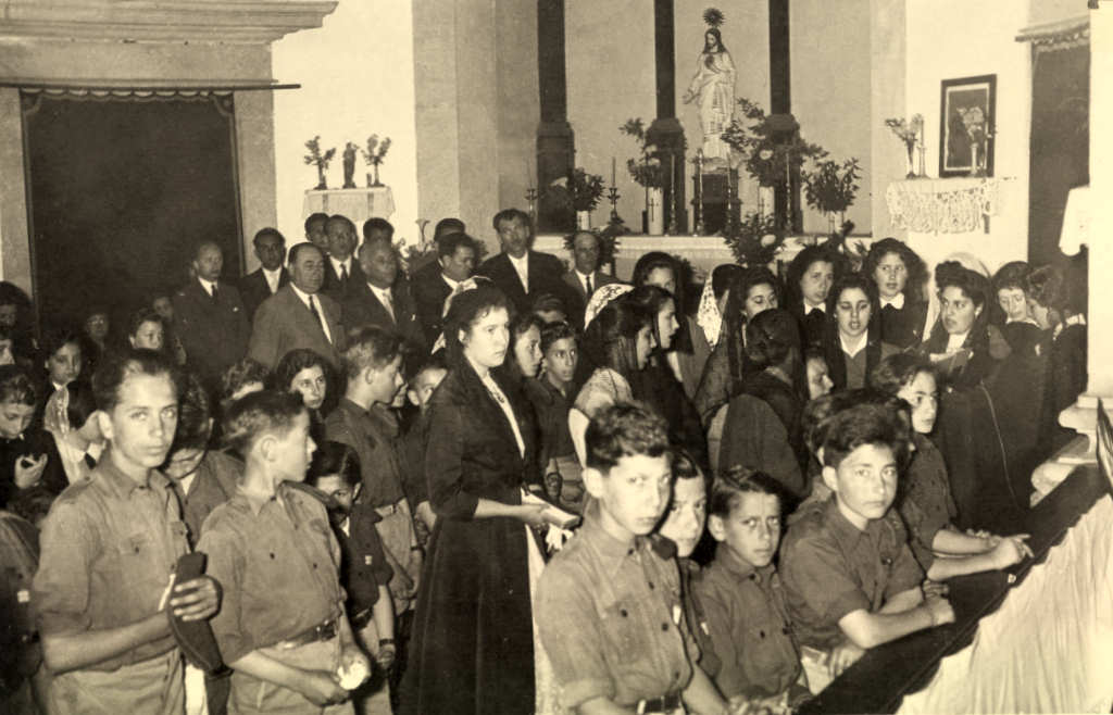 33. Na Missa – Quinzé Varela, Mico, João Dâmaso, Ofélia, Fernanda Monteiro, Lurdes e Ester Caldeira e marido Dr. Paula Santos, Regina Dias, Benvinda Pedrosa, Teresa Sousa, Lena Jorge, Mrª Amália Macedo, D. Franklina Pires Machado, irmã do Dr. Saul, Margarida Sousa, etc.