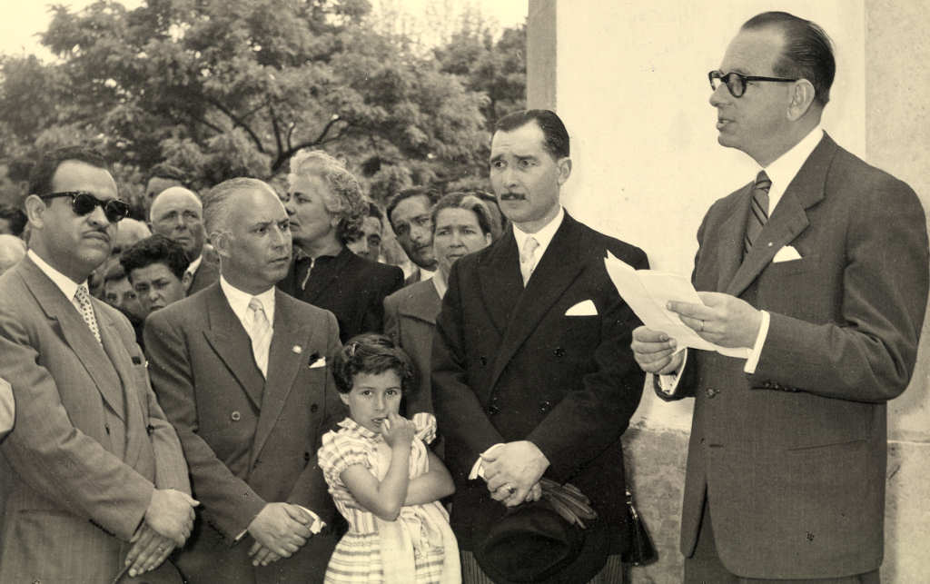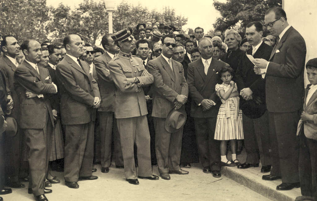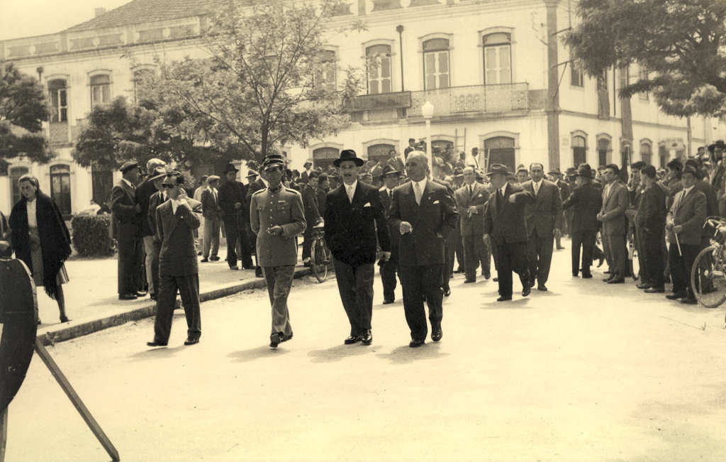 42. Fim da cerimónia do descerramento da placa. Lucena, tenente da GNR, Dr. Simões Rocha (Presidente da Câmara e Dr. Saul.
