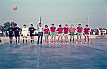 Equipa de futebol de salão de Quimbele. Nomes de alguns elementos da equipa (de vermelho, da esq. para a ditª): Alves, a pedir a bola, Mário, Lemos, Fonseca, Coelho, ??, Rosas, Galvão. De preto, a equipa visitante.