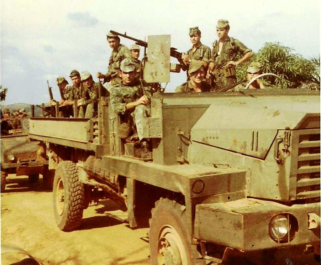 Condutores da CART 2783 em Quipedro. Em baixo: Santos "Paderne", Martins, Feliciano, "Zé Nega" e Filipe Martins "Velhote". Em cima: Mestre, Matilde "Ermidas", Palanque, Madeira, Fialho, José Inácio "Monchique" e Gomes.