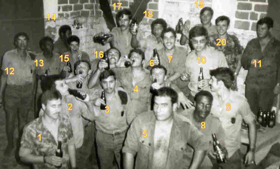 Festa para assinalar a chegada ao fim da comissão. Foi comer e beber até fartar! NOMES: 1.???; 2.???; 3.???; 4.???; 5.???; 6.???; 7.???; 8.???; 9.???; 10.???; 11.???; 12.???; 13.???; 14.???; 15.???; 16.???; 17.???; 18.???; 19.???; 20.???. Manuel Agonia Rodrigues - Março de 1973. Ficheiro: 013_Toto.jpg