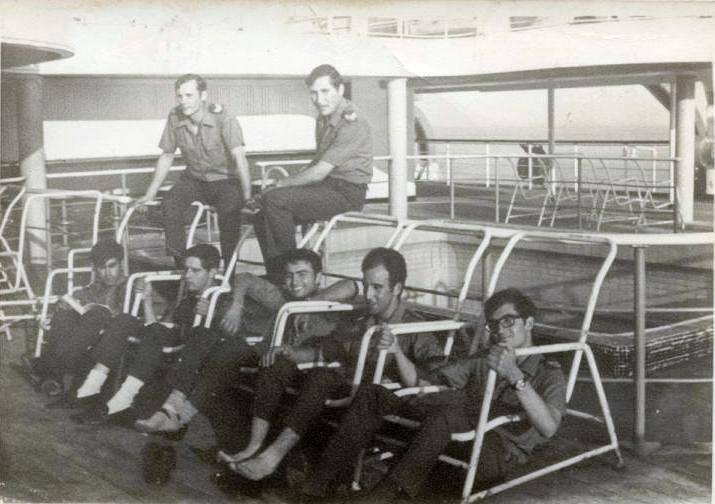 José Bregieiro com camaradas com quem viajou de Lisboa para Angola em Novembro de 1971. José Bregieiro - Novembro de 1971. Ficheiro: 002_VeraCruz.jpg
