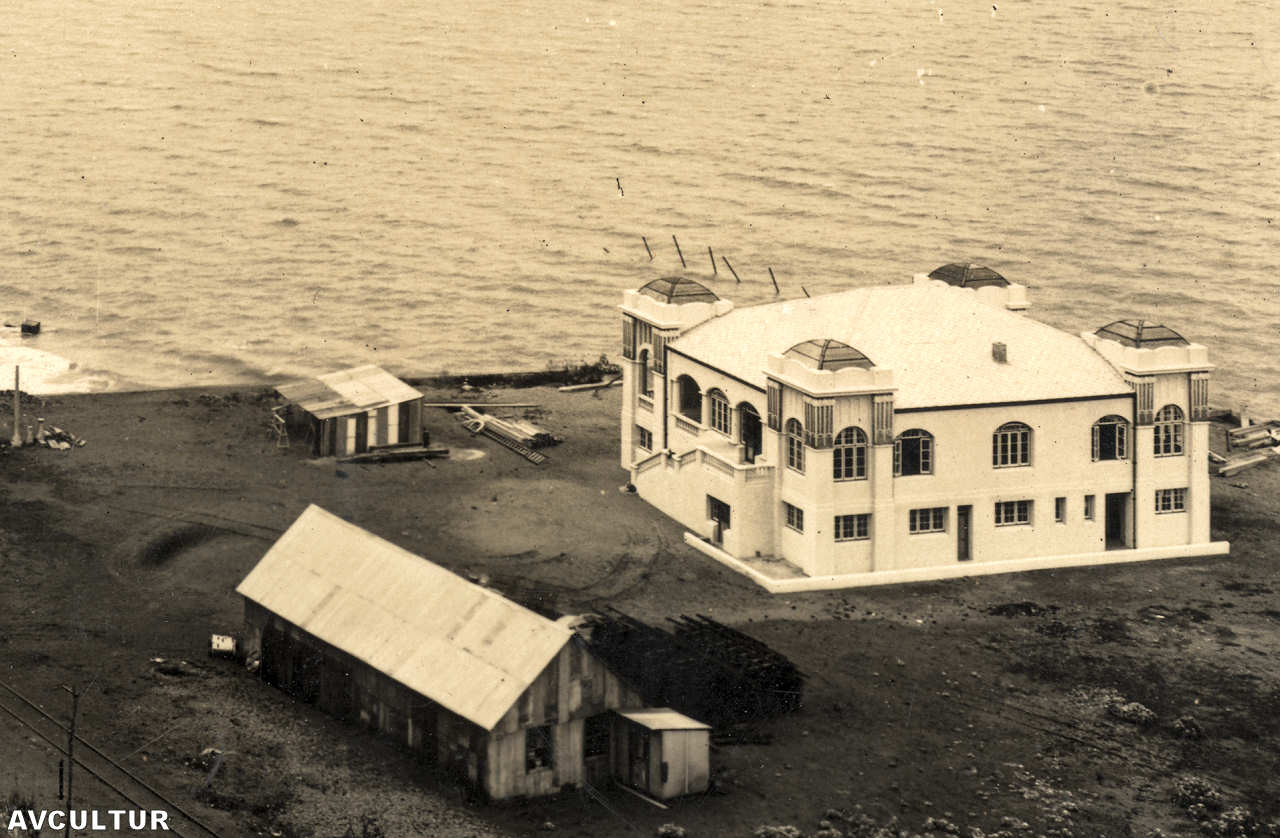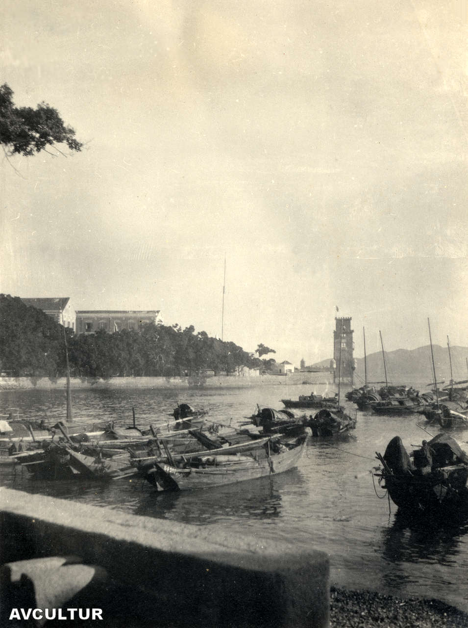 a Macau. No lado esquerdo, por cimo do coberto, vê-se o mesmo farol que