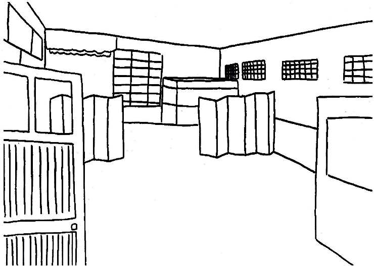 – espaço mal distribuído, muito frio devido ao material de revestimento usado (mosaico, azulejos, etc.), janelas mal vedadas e a porta muito estreita (utilizada por todos os alunos).