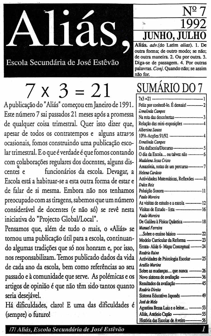 Escola Secundária José Estêvão, n.º 7, Jun.- Jul. de 1992