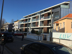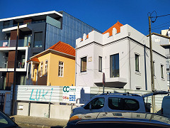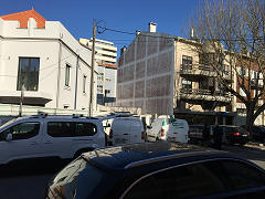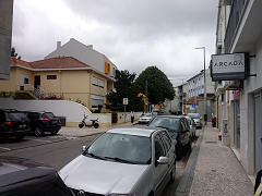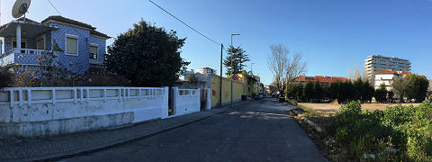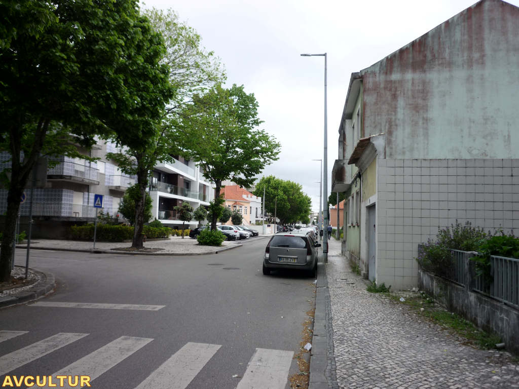 25. Panorâmica da Rua Aires Barbosa de nascente para poente. Para uma panorâmica de 2014 a partir da passagem desnivelada para peões, mostrando o que havia em frente ao cemitério, clicar AQUI.