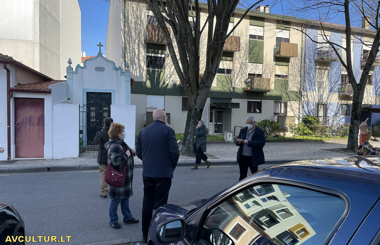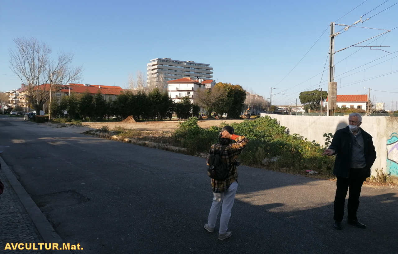 1. O Grupo na Praceta João Sarabando, vendo-se a placa toponímica. (Foto L. Taveira)