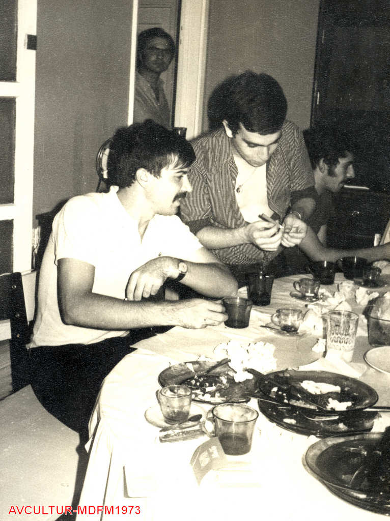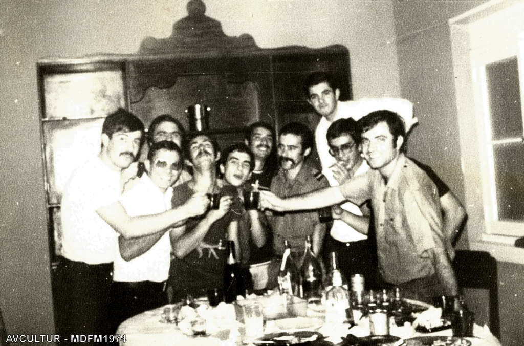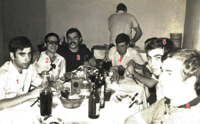 Momento de convívio no Natal de 1973. NOMES: 1.???; 2.???; 3.???; 4.Manuel Matias; 5.???; 6.???.