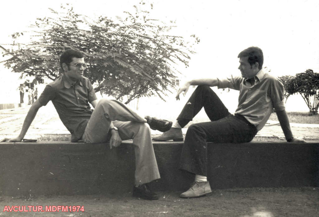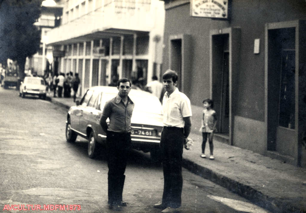Manuel Matias e Viegas em frente ao Clube de Sargentos, em 1974.