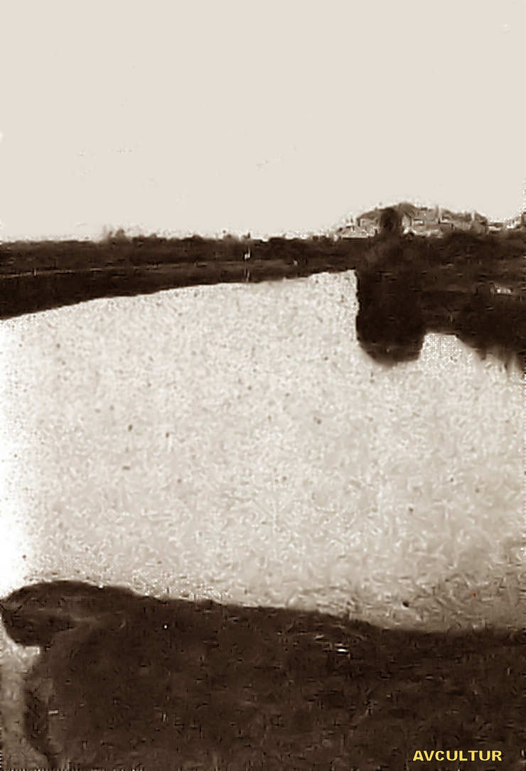saída da ponte, nos rodados de uma calçada antiga cavados nas capas de