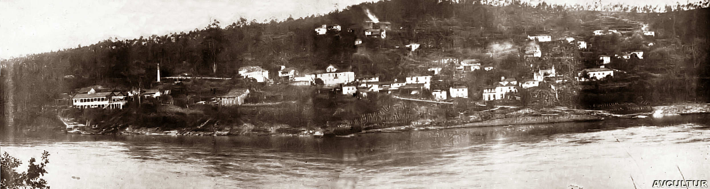 Panorâmica da margem do Douro, vendo-se a povoação de Canedo, cerca de 1943. Clicar na imagem para a ampliar.