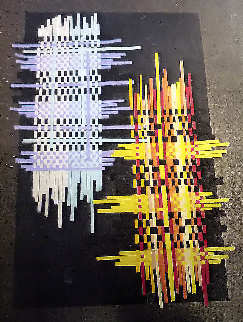 criar 'tecelagem' em papel, com tiras de 5 mm, em diversos papéis e