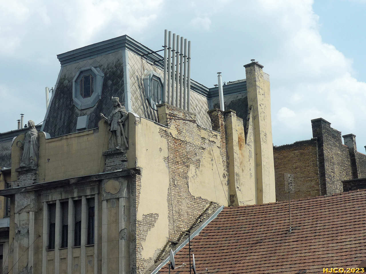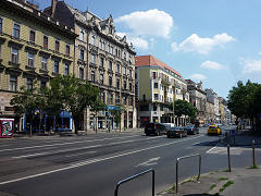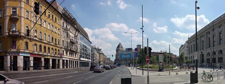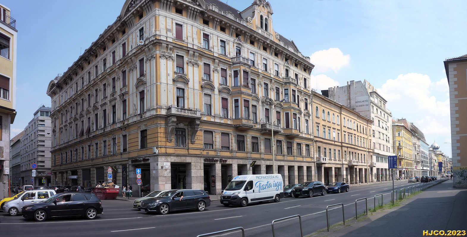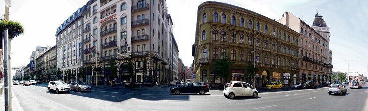 4. Panorâmica da rua Rákóczi, onde fica o hotel. Clicar para ampliar e explorar a imagem. A seguir, pormenores de alguns edifícios. (11:00)