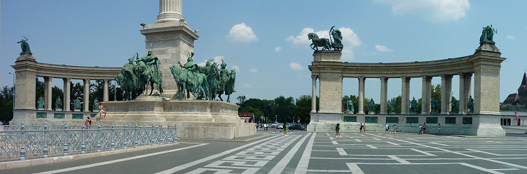 109.   (12:17:28)  Ufa! Finalmente, 12 minutos depois, chegámos ao objectivo antes do almoço: a Praça dos Heróis. - (Pan. 180º) –