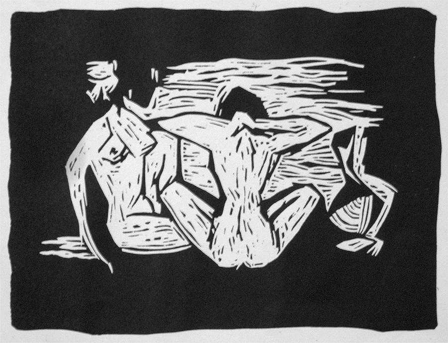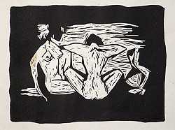 1 - Mulheres no banho, 1961 - linóleo - 29x21 cm.