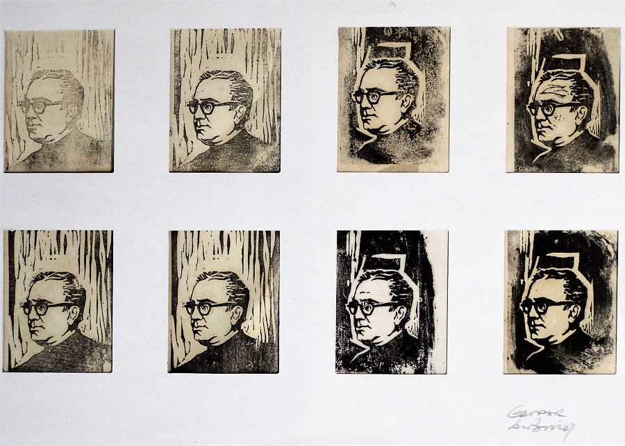 2 - Cristo, 1962 - linóleo - 29x21 cm.   3 - Estudos, 1963 - linóleo - 51x32 cm.