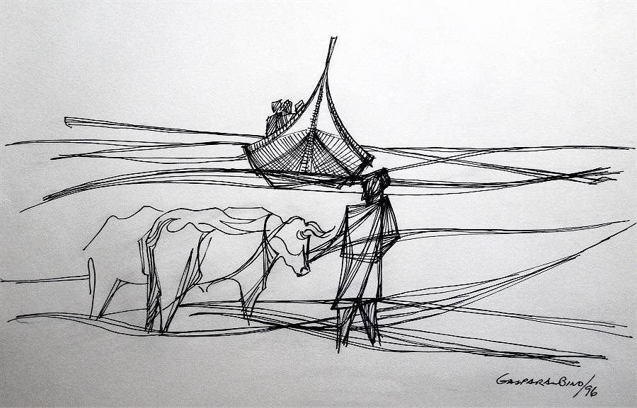 18 - Arte da xávega I, 1996 - nanquim - 29x20 cm.