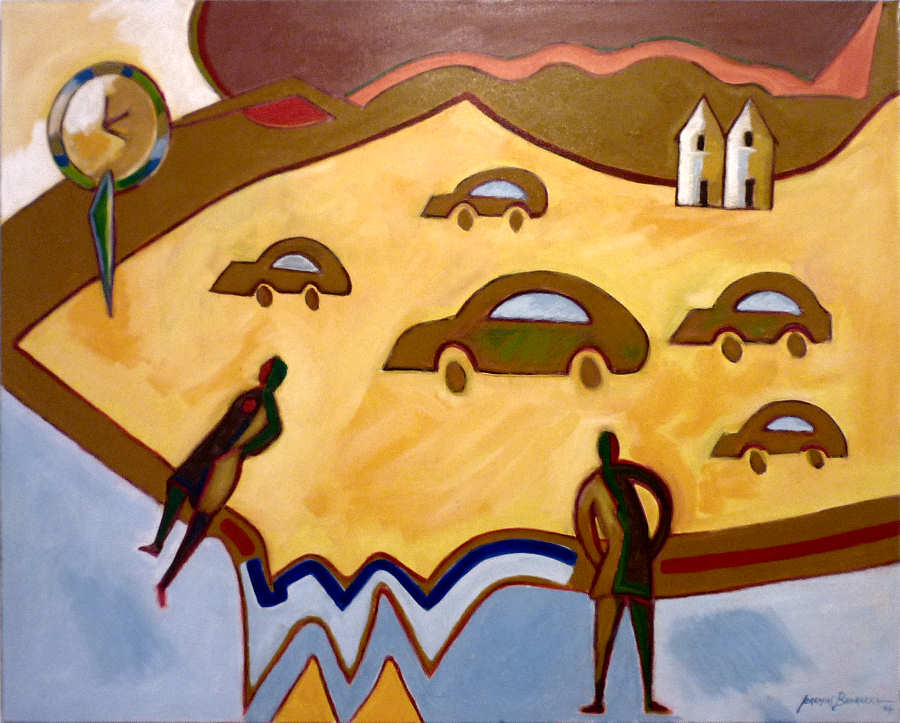 19.Paisagem urbana - Acrílico s/ tela - 80x100 cm   20.Mulher com flor - Técnica mista - 70x50 cm