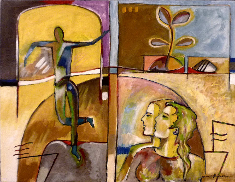 27.Tarde de dança - Acrílico s/ tela - 80x100 cm   28.Olhos nos olhos - Acrílico s/ tela - 25,5x35,5 cm