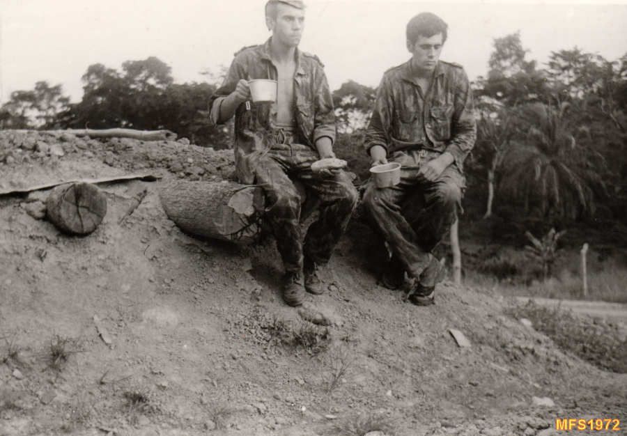 91 - No Quixico, em Janeiro de 1972. Mário Ferreira Silva (Cabo padeiro) e seu ajudante Fernando Sancheira Gomes.