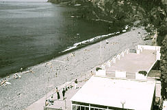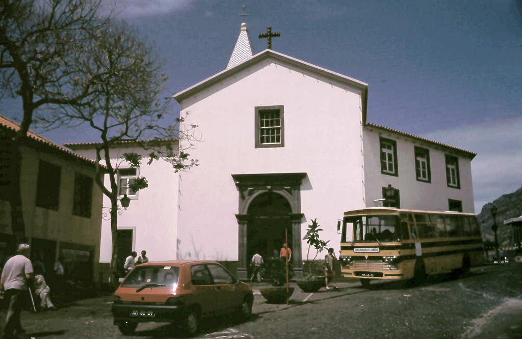 134. Câmara de Lobos. Ao lado da igreja, a viatura que transportou o grupo dos coralistas durante a permanência na Madeira.