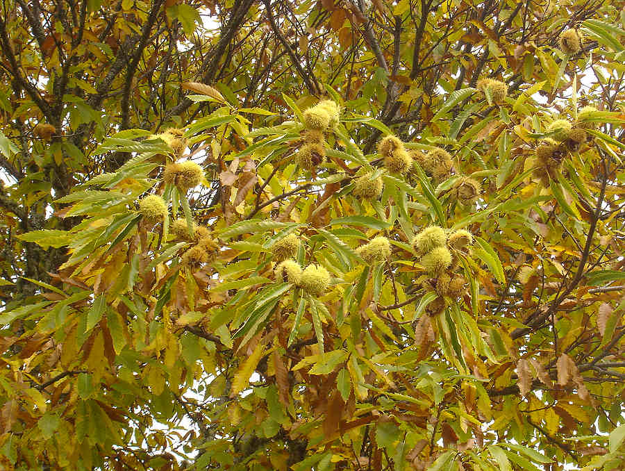 com ele nos ramos carregados de ouriços. As castanhas comem-se cruas,