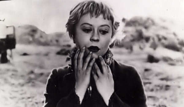 Giulietta Masina (Gelsomina), Anthony Quinn (Zampano), Richard