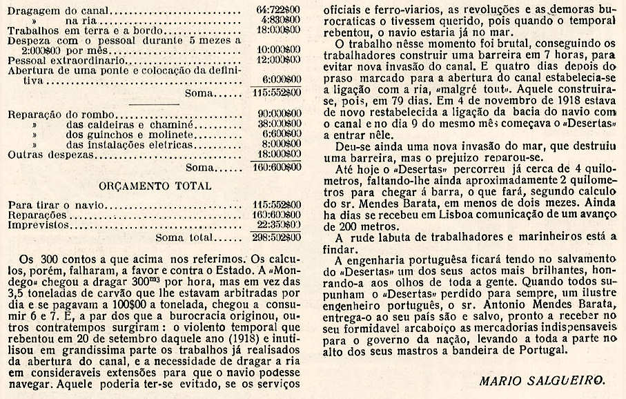 Mário Salgueiro, Como se salvou o Desertas, In "Ilustração Portuguesa", 2ª série, Nº 714, 27-10-1919, pág. 324