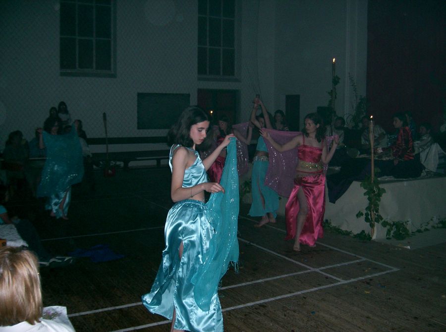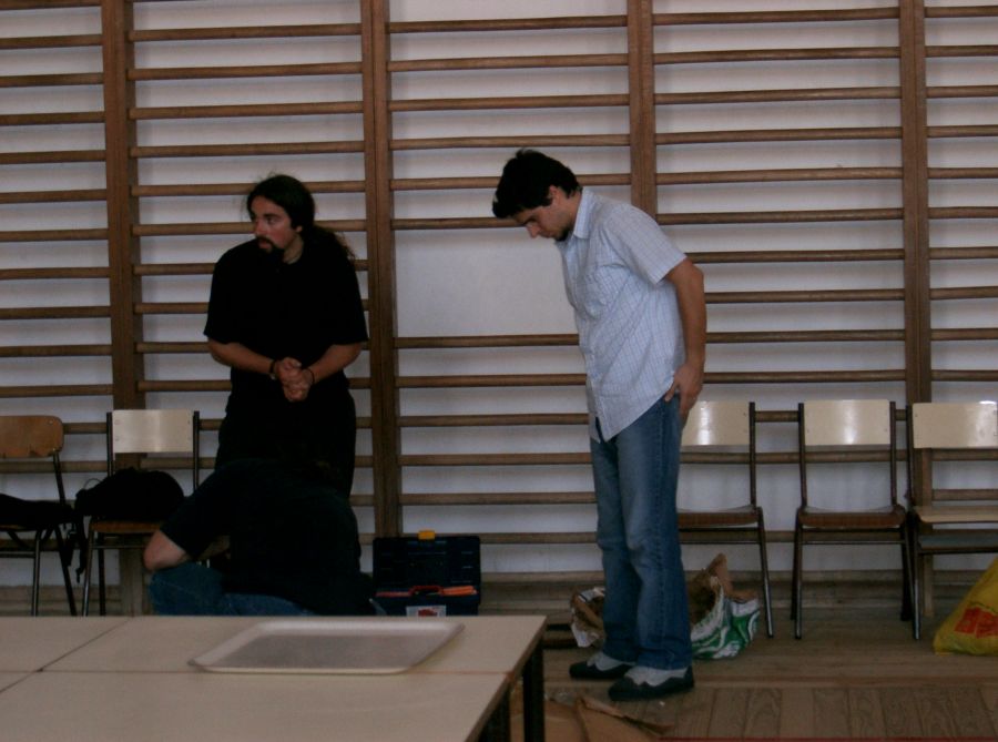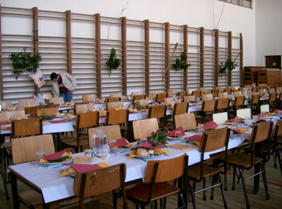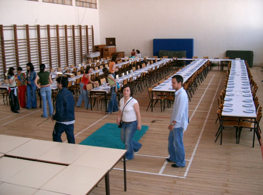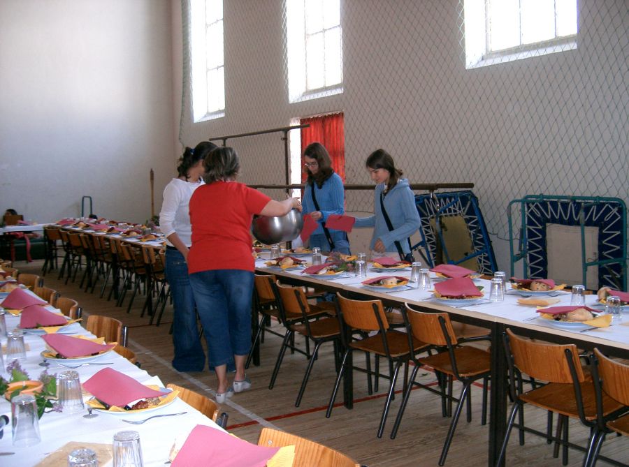 | Jantar romano: imagens de Marisa e Joana. - Arranjo da sala e... decurso do mesmo.