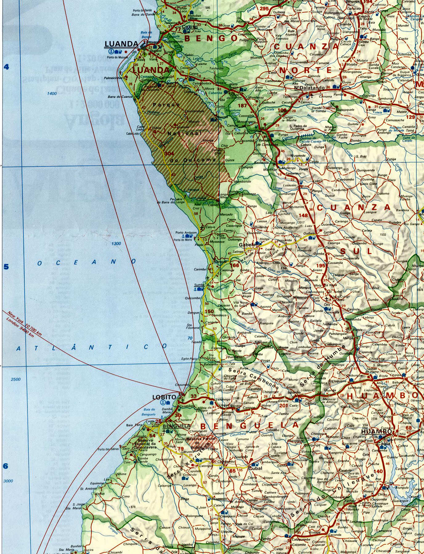 Zona norte de Angola entre Luanda e o rio Zaire, com toda a rede viária na década de 1970, abrangendo parte de Carmona (actual Uíge) e S. Salvador.