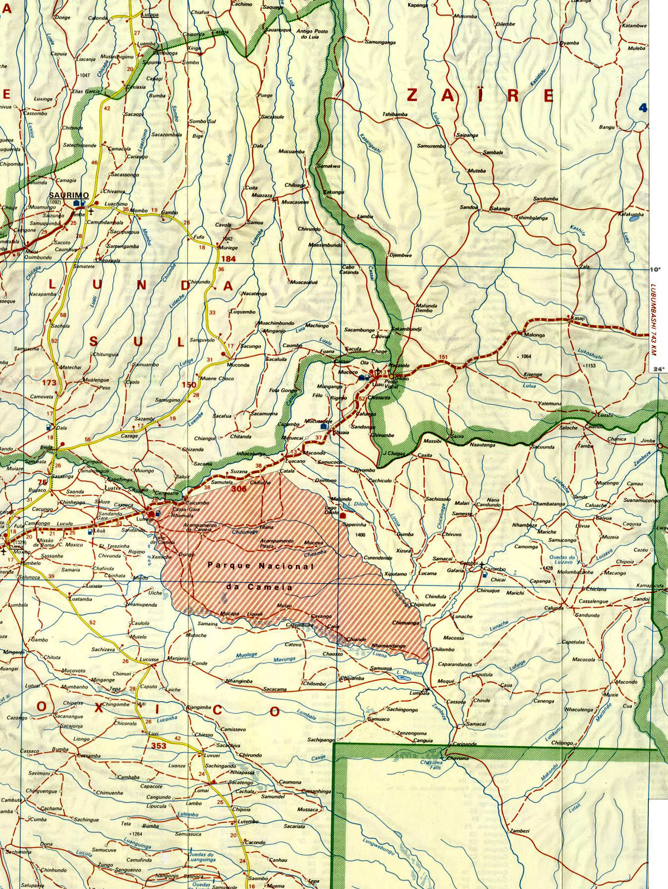 Leste: Cangamba - Gago Coutinho - Mapa de 1972/74