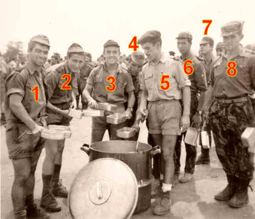 Recebendo o rancho. Nomes: 1.???; 2.???; 3.???;