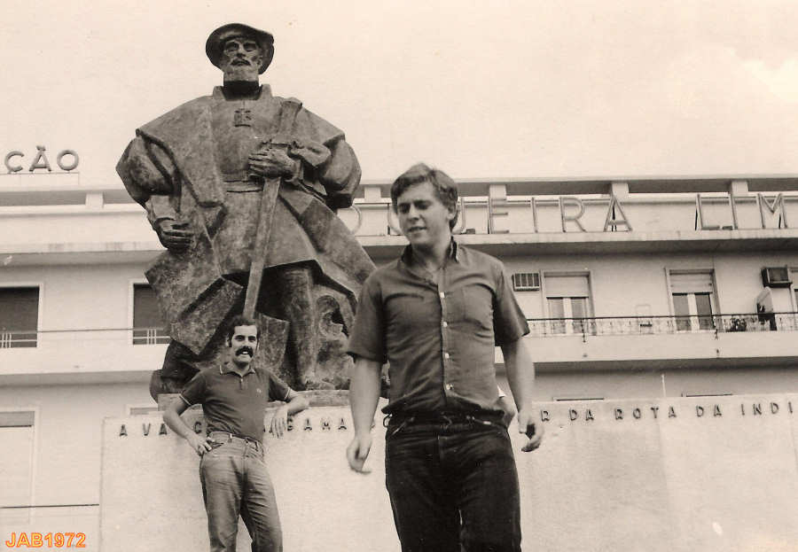 Junto ao monumento a Vasco da Gama.